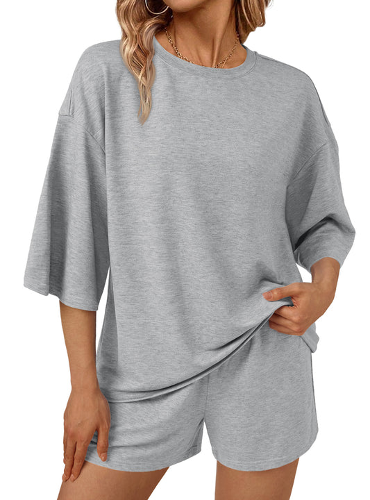 SUNBS 2 Piece Outfit for Women Lounge Sets Two Piece Set Summer Sets 3/4 Sleeve Oversized Tshirts Elastic Waist Short