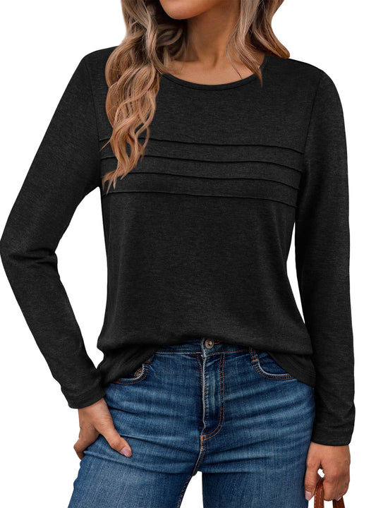 SUNBS Blouses for Women Dressy Casual Crewneck Womens Tops Pleated Long Sleeve Shirts for Women Blouses