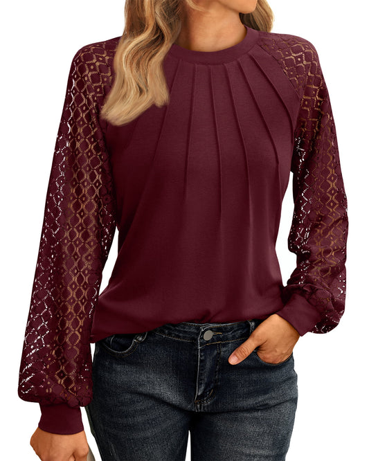 SUNBS Blouses for Women Lace Tunic Tops Crewneck Casual Fashion Long Sleeve Shirts