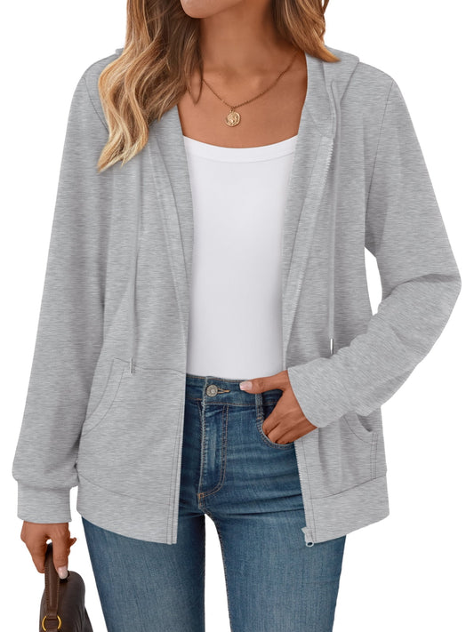SUNBS Drawstring Zip Up Hoodies for Women Fall Cute Jacket Oversized Casual Sweatshirts with Pocket