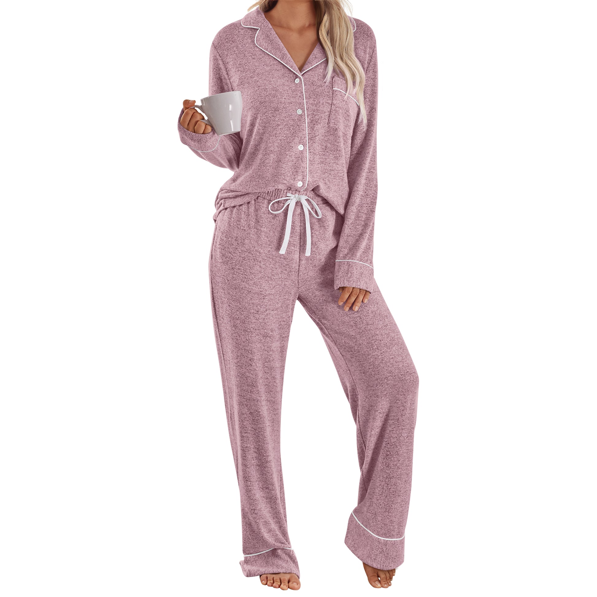 SUNBS Lounge Sets for Womens Pajamas Set 2 Piece Button Down Long Sleeve Shirts Drawstring Wide Leg Pants Matching Outfits Clothes 2025
