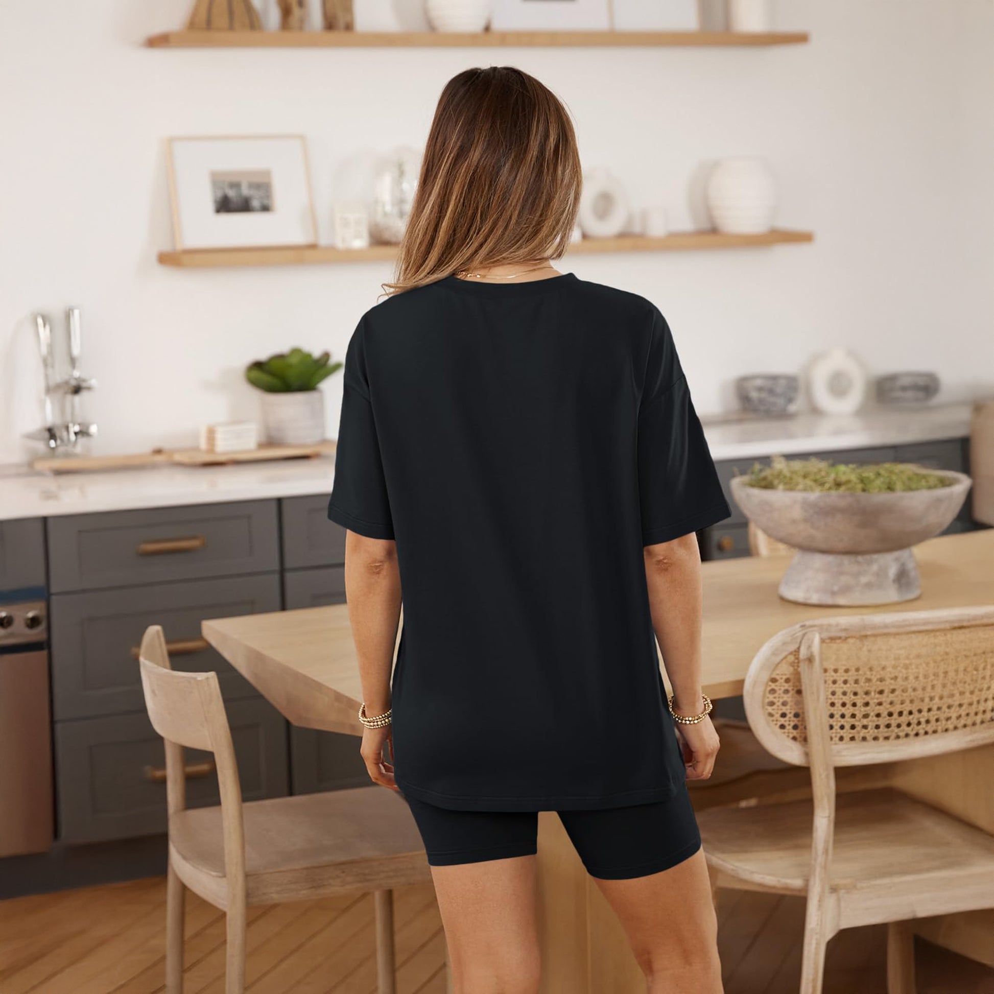 SUNBS Women's Lounge Set Womens 2 Piece Sets Matching Clothing Oversized Tshirts Biker Short Summer Outfits 2025