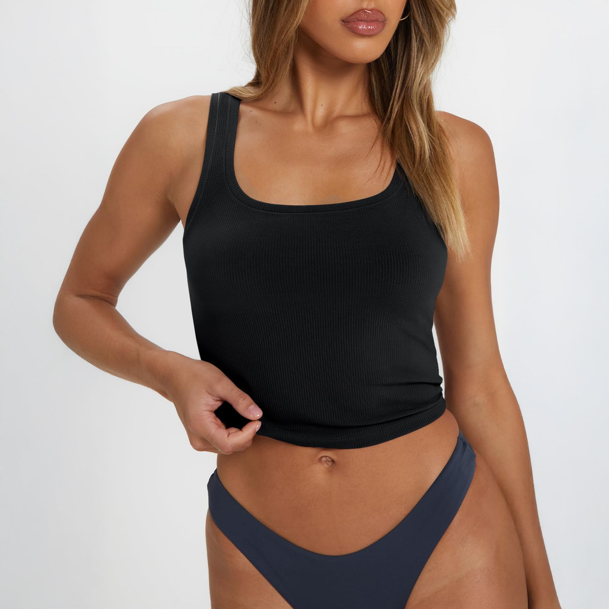 SUNBS Womens Square Neck Tank Tops Workout Cropped Ribbed Summer Camisole Sleeveless Tops